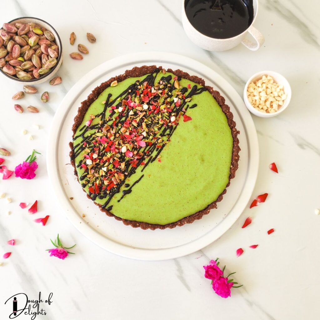 There’s something magical about the combination of chocolate and pistachios—especially when it’s wrapped up in a rich, creamy tart that doesn’t even need an oven. If you’re someone who wants a gorgeous dessert without too much fuss, you’re going to love this eggless, no-bake chocolate pistachio tart.