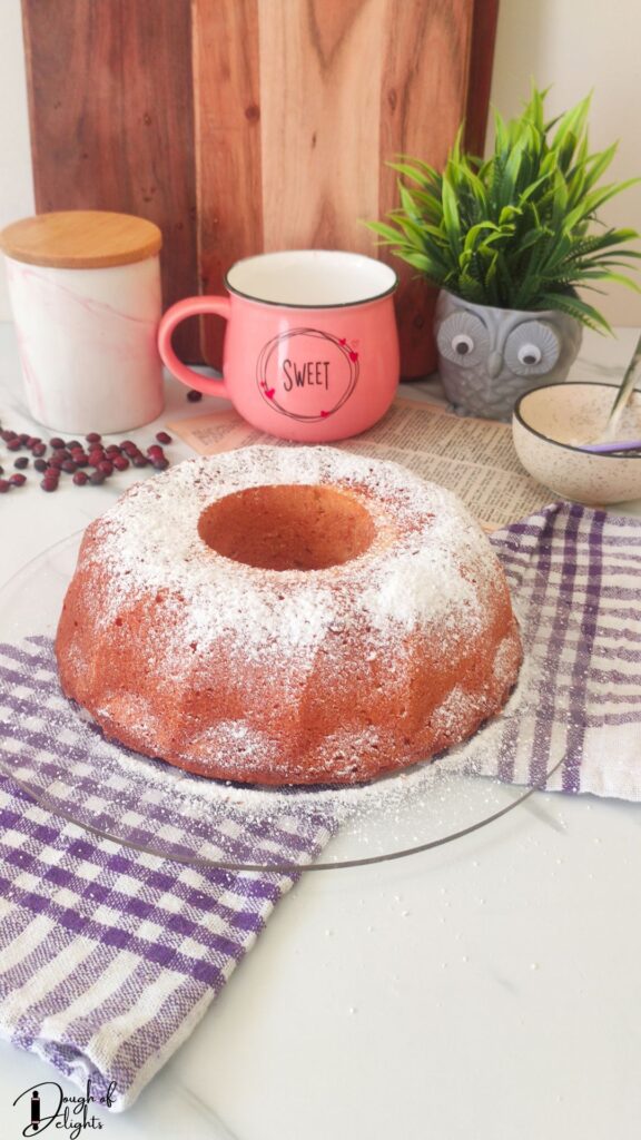 - Let the cake rest in the pan for 5–10 minutes, then carefully remove it and cool completely on a wire rack. Dust with powdered sugar once cool.