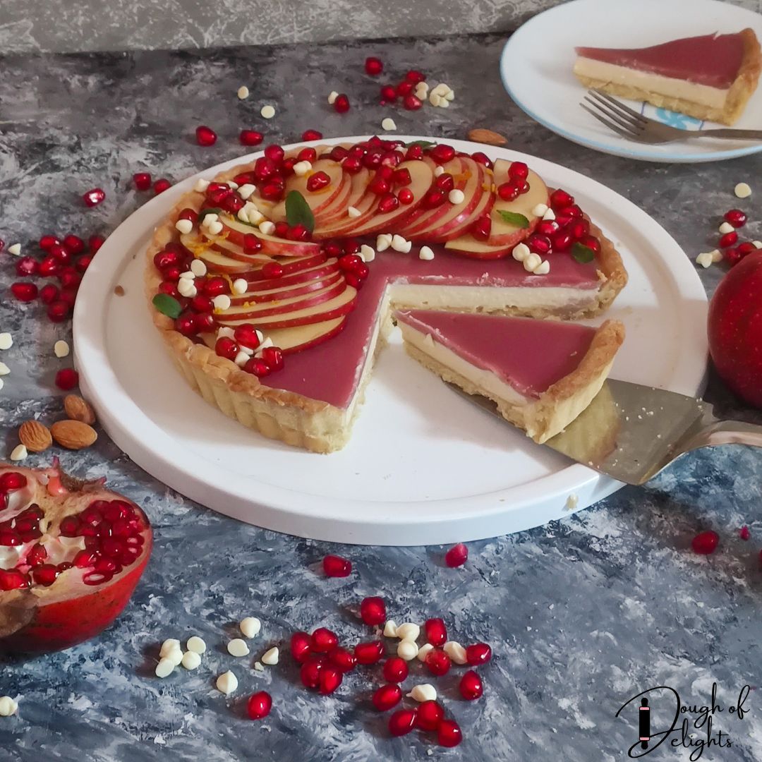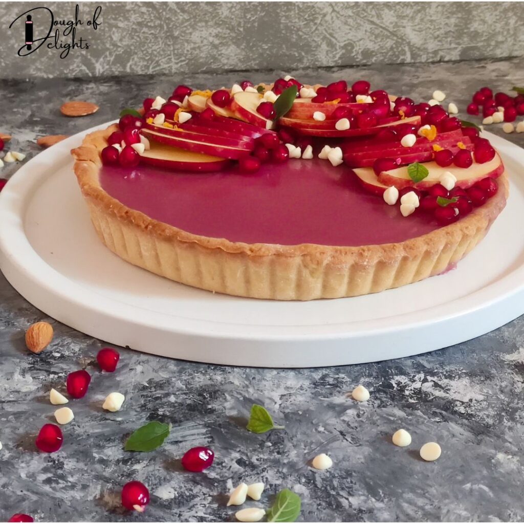 Almond and white chocolate is a heavenly combo. The natural nuttiness of almonds beautifully complements the creamy sweetness of white chocolate. And when this creamy-nutty duo blends with tangy pomegranate and a buttery crust, a delightful fusion of textures and flavours happen.